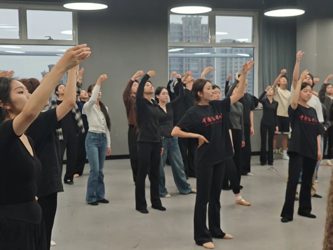 Professor Ella began by discussing the sanctity of the stage and the rehearsal space. Through a series of warm-up exercises, she guided the students to fully engage their senses of sight, hearing, smell, taste, and touch, emphasizing the crucial role of the "five senses" in stage performance. During the physical training session, she highlighted the core concept of the lecture: touch is the primary sense when performers interact with objects, while the perception of gravity is a fundamental basis for stage expression.