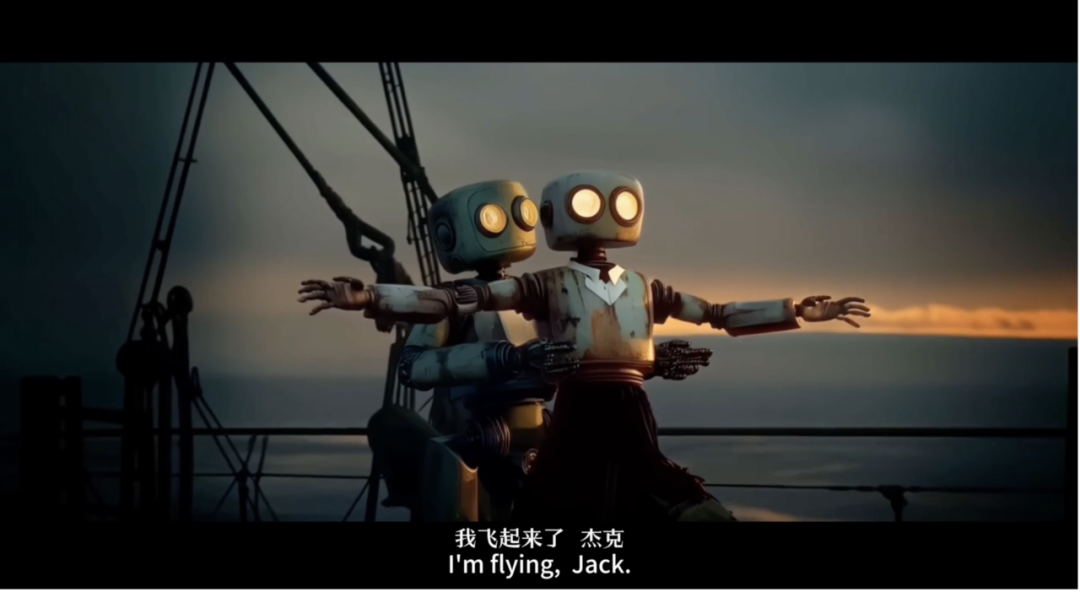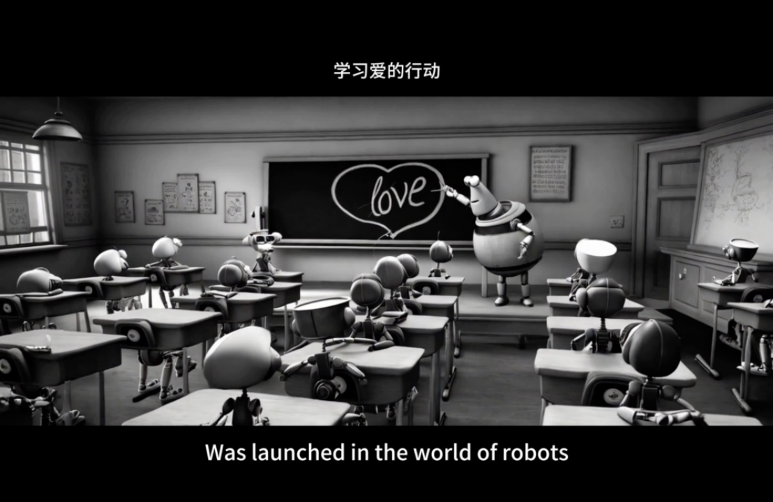 这是一部由 AIGC技术驱动制作的科幻爱情实验短片,以未来机器文明为背景,探讨机器人对爱情与生命的哲学思考。影片戏仿经典爱情电影名场面,将人类主角置换为机器人,讲述硅基生命模仿碳基情感、试图破解生育率危机的故事。创作团队运用 AI 语言与视觉大模型,融合多元美学风格,让机器人以机械动作传递情感。短片以结尾虽未解决危机,却让爱情在冰冷机械中绽放浪漫温度,致敬电影史的同时,诗意叩问AI 时代的人性与技术。